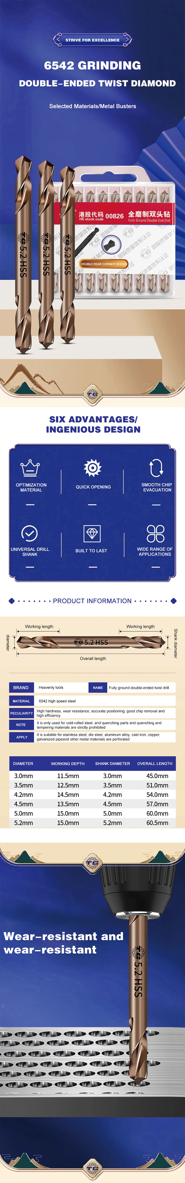 Bor logam tg double baja kecepatan tinggi shank lurus twis bor. Terbuat dari baja kecepatan tinggi, kekerasan kuat, ketahanan aus yang baik, dapat melakukan pekerjaan pemboran dengan kekuatan tinggi. Desain gagang datar, mudah dipasang dan dipegang, stabilitas operasi yang baik. Struktur double-head praktis, dan dapat beralih dengan cepat ke ujung lain setelah satu ujung aus, mengurangi frekuensi penggantian, dan merupakan alat bantu yang baik dalam industri pemrosesan logam.