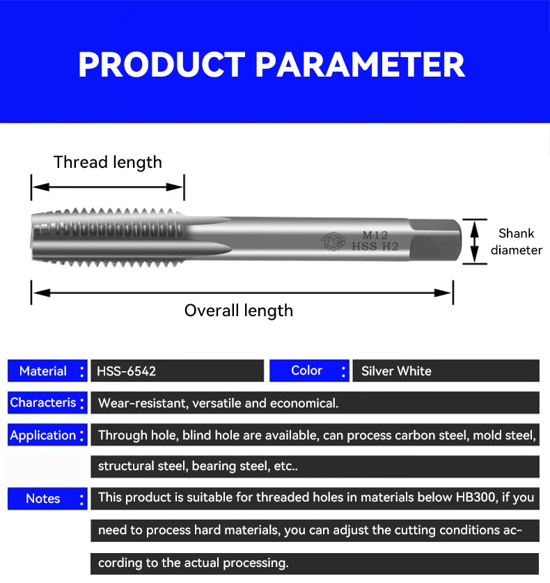 Penggilingan tap ujung persegi bermata bulat standar metrik kustom TG factory, spesifikasi mencakup M4-M6, dapat memenuhi berbagai kebutuhan pemrosesan benang. Menggunakan bahan baja kecepatan tinggi HSS-6542 dengan kekerasan dan ketahanan aus yang sangat baik. Desain unik ujung spiral dapat secara efektif menghilangkan serpihan dan meningkatkan efisiensi serta akurasi pengeboran. Baik dalam produksi massal maupun operasi penggilingan presisi, alat ini dapat tampil dengan baik dan merupakan pilihan yang dapat diandalkan untuk pekerjaan mesin.